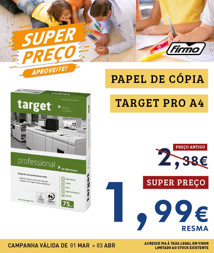 SUPER PREÇO | PAPEL CÓPIA TARGET PROFESSIONAL A4 | 1.99€/RESMA | CASH&CARRY ONLINE FIRMO | COMPRE JÁ!