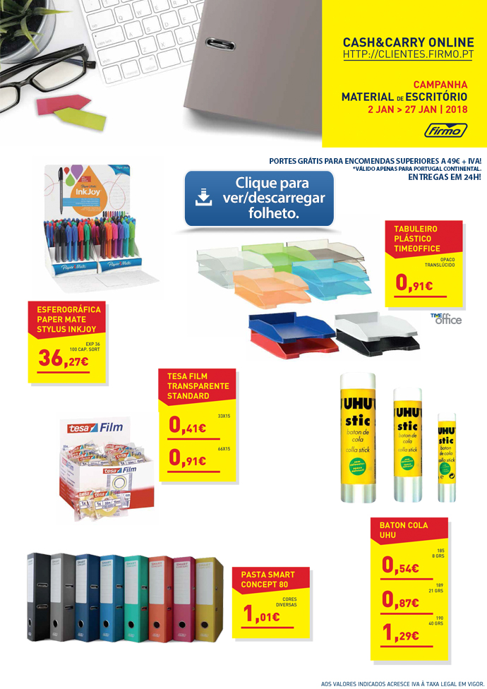 Assunto: Folheto MATERIAL DE ESCRITÓRIO - Janeiro 2018 - Cash&Carry Online FIRMO | Aceda já!