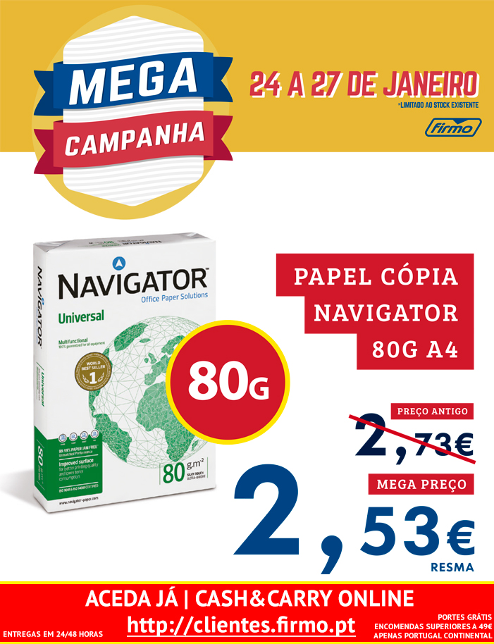 MEGA CAMPANHA PAPEL CÓPIA NAVIGATOR 80G A4 | CASH&CARRY ONLINE FIRMO | COMPRE JÁ!