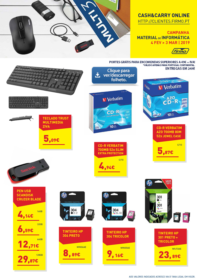Assunto: Folheto MATERIAL de INFORMÁTICA | Fevereiro 2019 - Cash&Carry Online FIRMO | Aceda já!