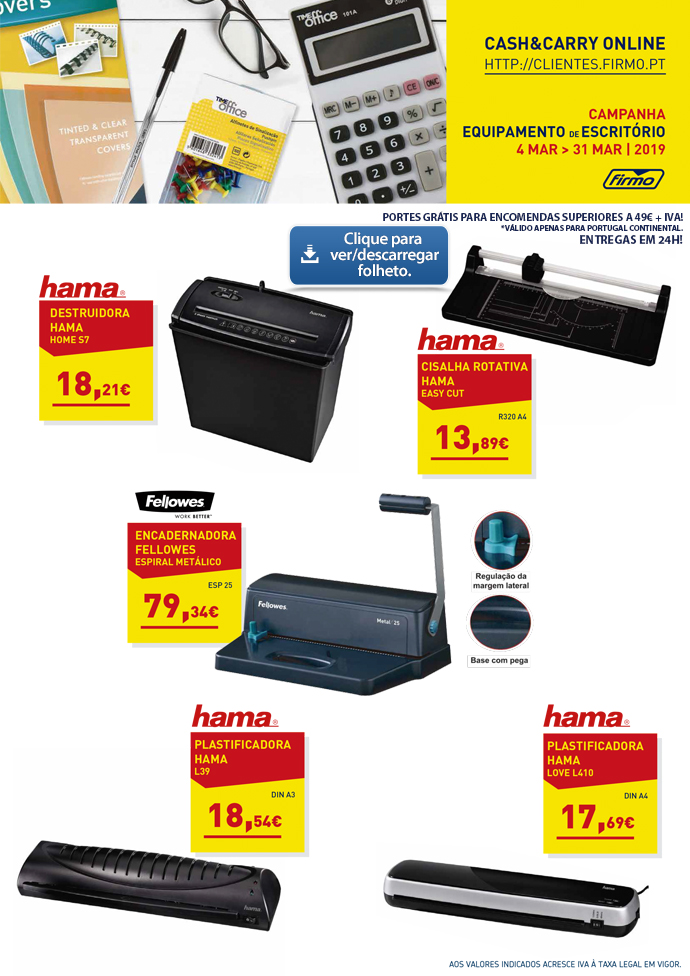Assunto: Folheto EQUIPAMENTO de ESCRITÓRIO | Março 2019 - Cash&Carry Online FIRMO | Aceda já!