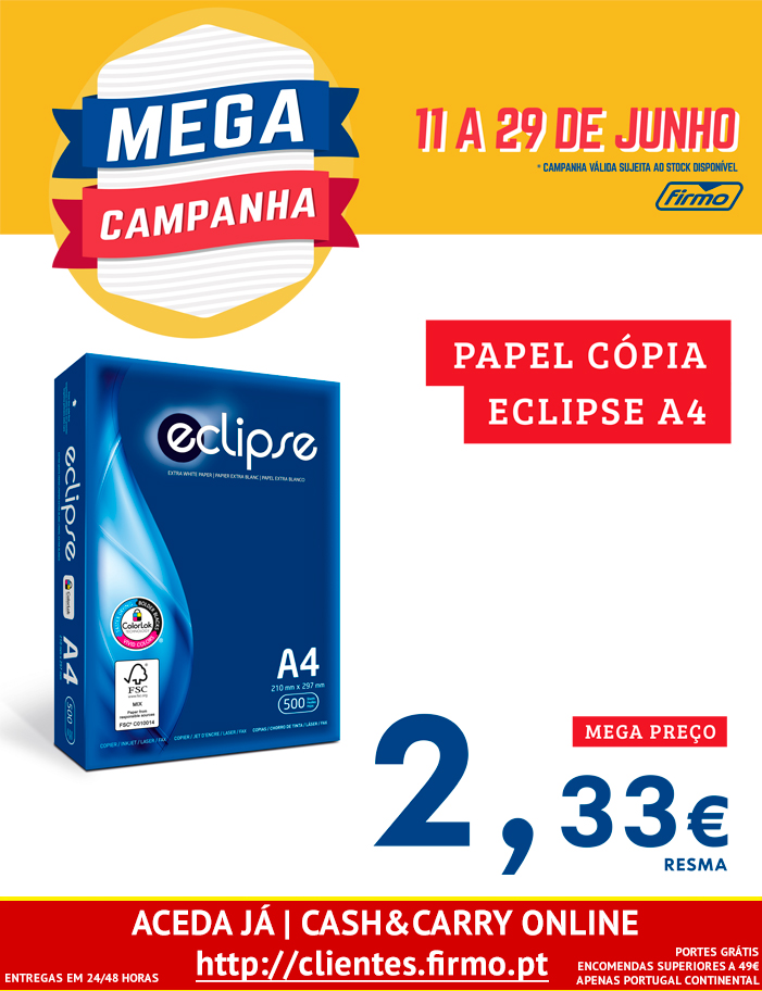 MEGA CAMPANHA PAPEL CÓPIA ECLIPSE A4 | CASH&CARRY ONLINE FIRMO | COMPRE JÁ!