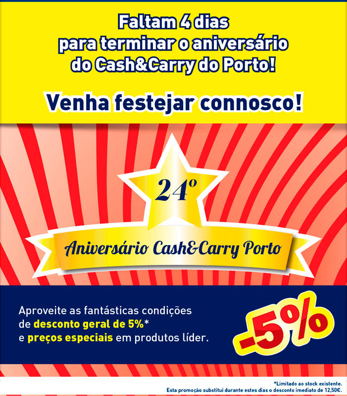 Faltam 4 dias para terminar o aniversário do Cash&Carry FIRMO Porto | 5% de Desconto - Aproveite já!