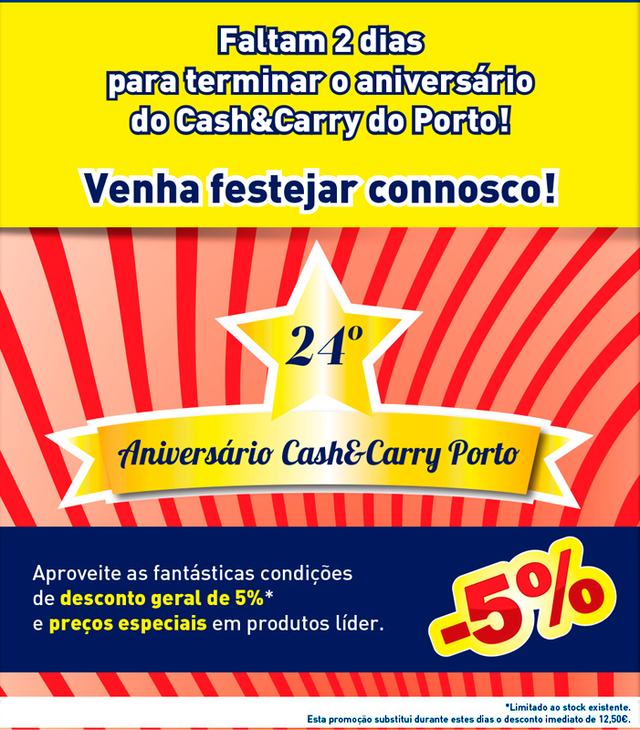 Faltam 2 dias para terminar o aniversário do Cash&Carry FIRMO Porto | 5% de Desconto - Aproveite já!