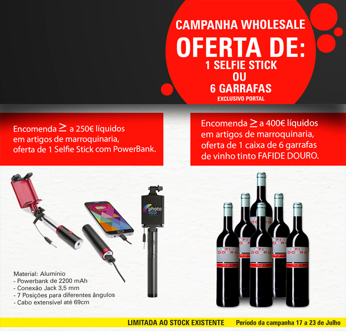 OFERTA DE SELFIE STICK OU 6 GARRAFAS DE VINHO DOURO EM COMPRAS DE MARROQUINARIA! | 17 A 23 DE JULHO | FIRMO