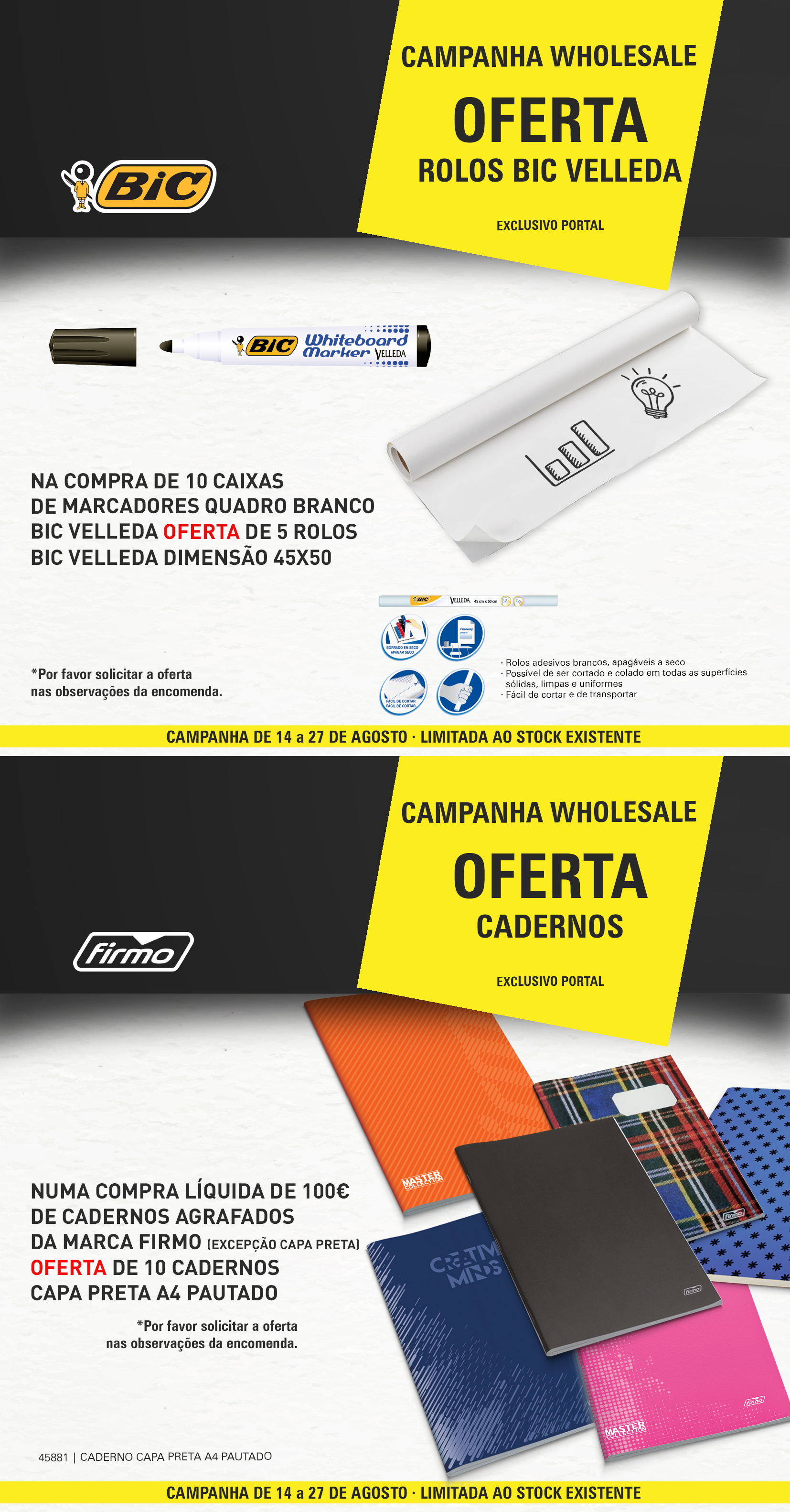 OFERTA ROLOS BIC VELLEDA | OFERTA CADERNOS CAPA PRETA | FIRMO