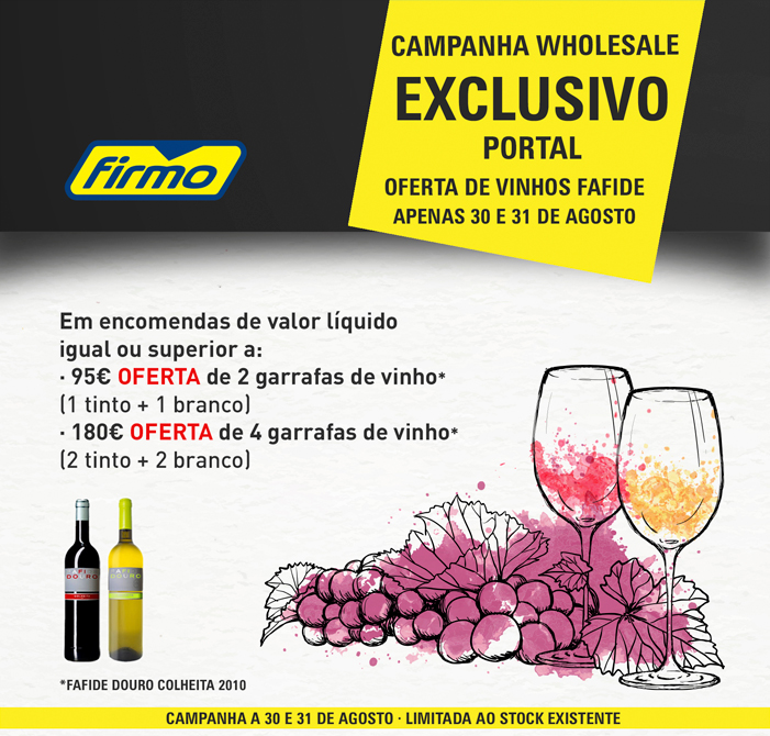 OFERTA DE 2 OU 4 GARRAFAS DE VINHO DOURO EM ENCOMENDAS >= 95€ / 180€! | APENAS 30 E 31 DE AGOSTO | FIRMO