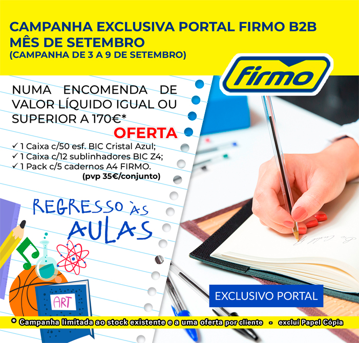 OFERTA EXCLUSIVA – REGRESSO ÀS AULAS >= 170€! | 3 A 9 DE SETEMBRO | FIRMO