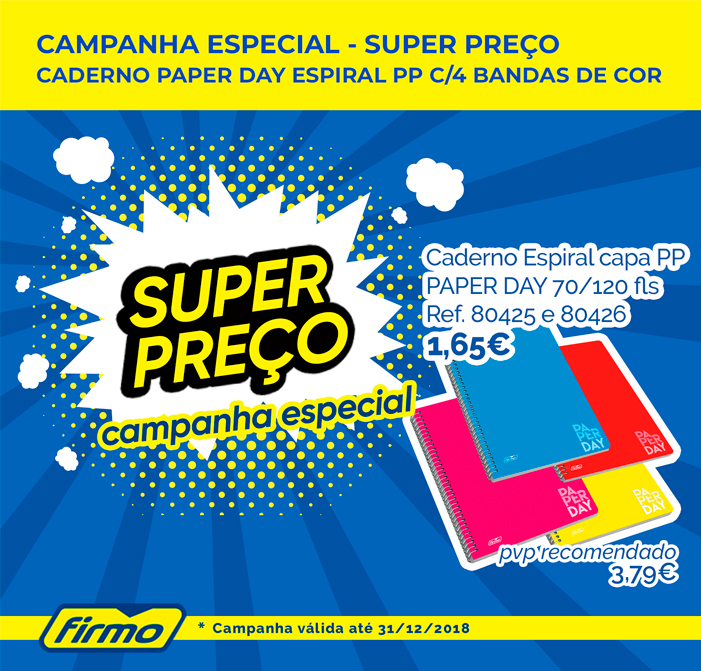 CAMPANHA ESPECIAL – SUPER PREÇO! | CADERNO PAPERDAY ESPIRAL PP | FIRMO