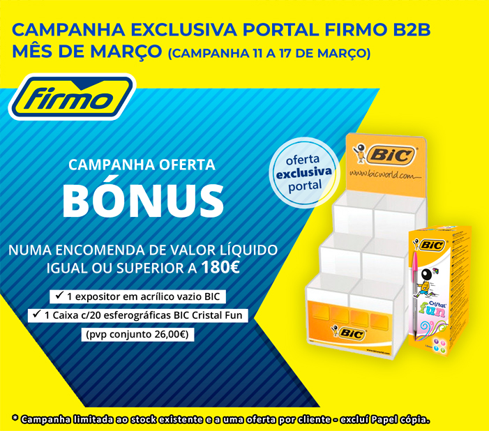 OFERTA EXCLUSIVA | EXPOSITOR + ESFEROGRÁFICAS BIC – ENCOMENDAS >= 180€! | 11 A 17 DE MARÇO | FIRMO