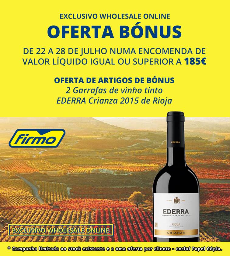 OFERTA BÓNUS | GARRAFAS VINHO EDERRA | 22 A 28 DE JULHO | FIRMO