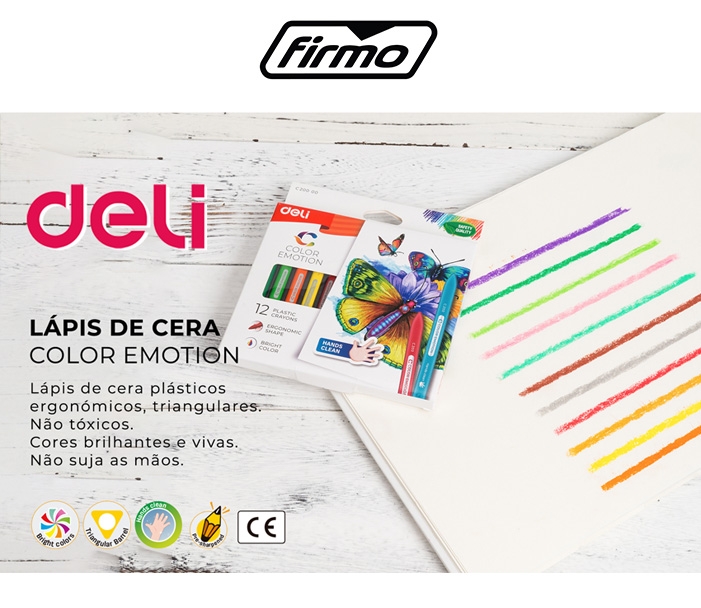 NOVIDADE – Lápis de Cera plásticos triangulares DELI COLOR EMOTION